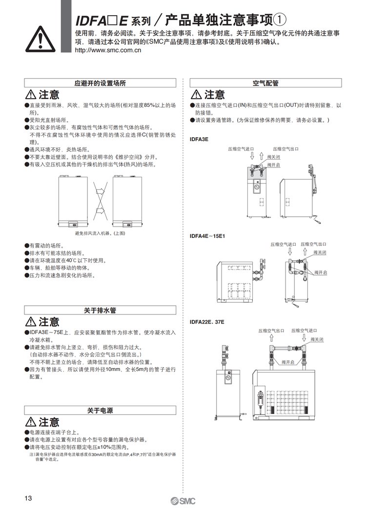 日本SMC冷冻式干燥机IDFA22E/37E/55E/75E 全新原装供应 品牌 | SMC | ||