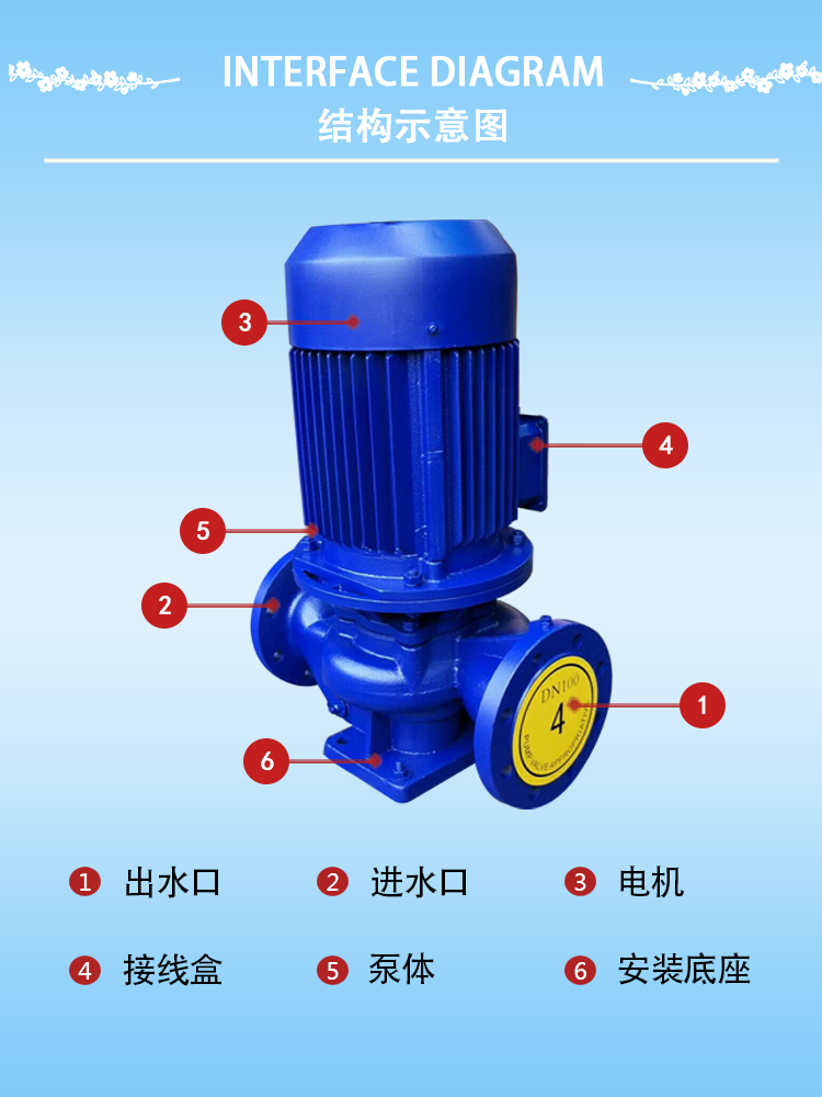 立式管道离心泵IRG50-250热水管道泵11KW单级铸铁12.5m3/h英科牌 泵轴位置 | 立式 | ||