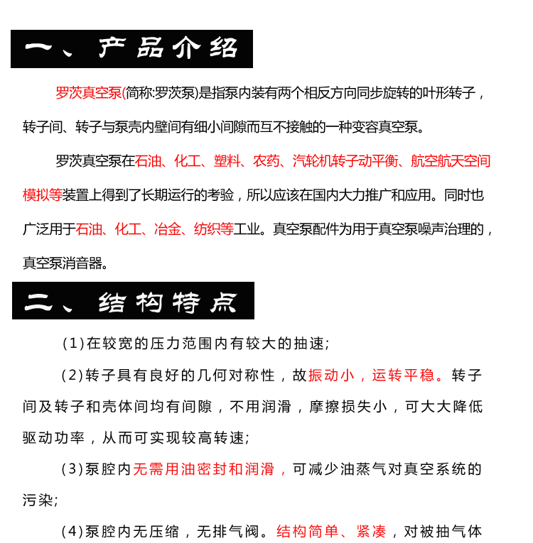 用途 | 罗茨泵 | ||