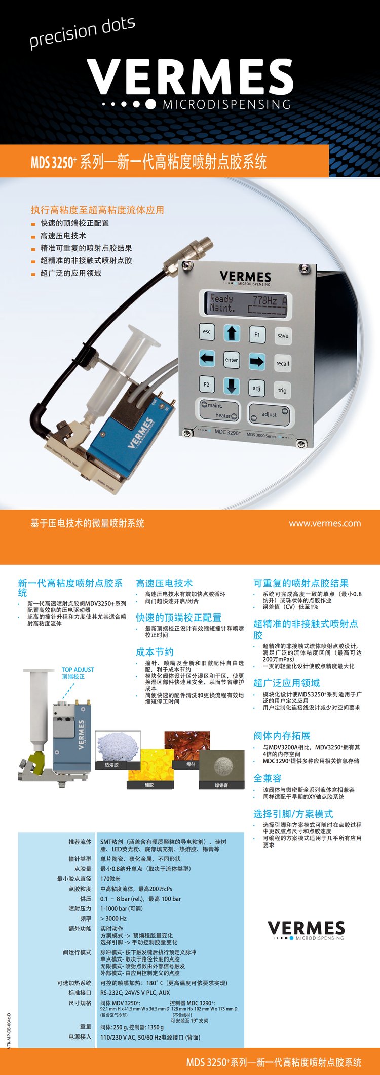喷射点/线段直径 | 直径尺寸最小可至 200 μ | ||