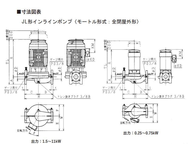 HITACHI 日立水泵 JL40P2-E50.25K 200V/50HZ 立式清水泵 是否支持加工定制 | 否 | ||