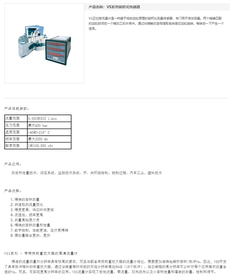 VS正位移流量计是一种基于啮合齿轮原理的容积比测量传感器,专门用于液体测量。两个精确匹配的齿轮封闭在一个精加工的外壳中。通过非接触式信号提取系统感应齿轮旋转。每转动一下产生一个信号