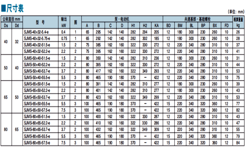 • 规格:SJMS-80×65-57.5-e200V