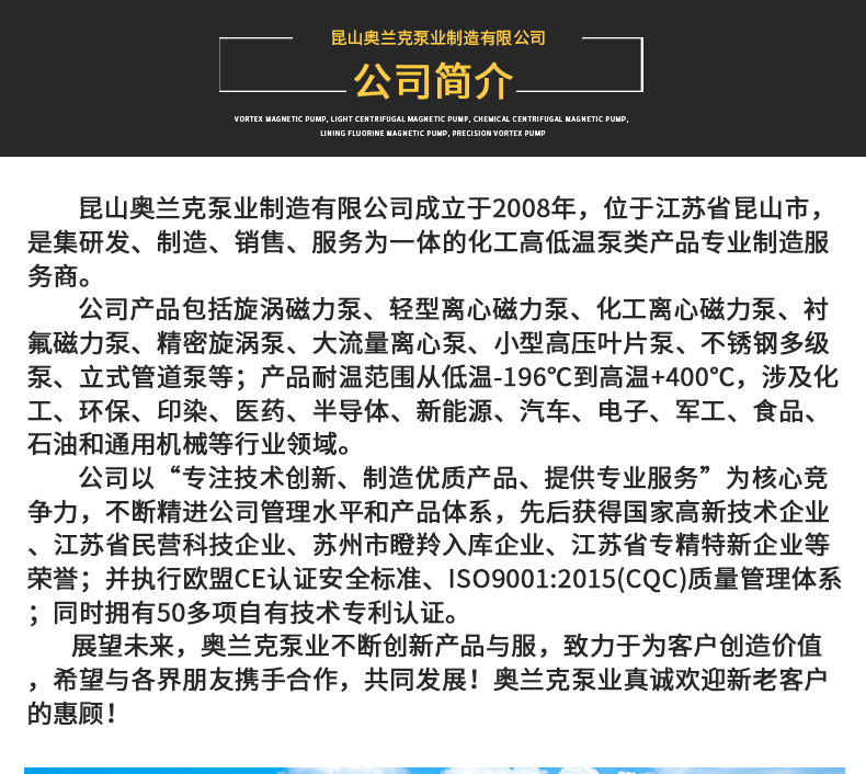 奥兰克AMC化工磁力泵医药中间体输送泵特殊电机可定制