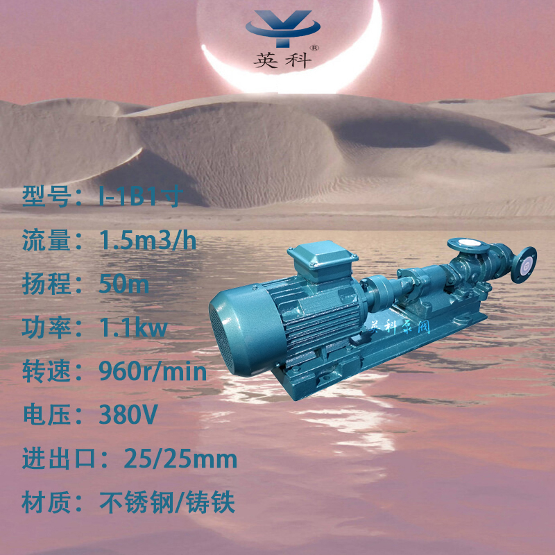 英科牌 螺杆 铸铁 流量1.5m3/h扬程50m功率1.1kw 卧式 浓浆泵 I-1B1寸 型号 | I-1B1寸 | ||