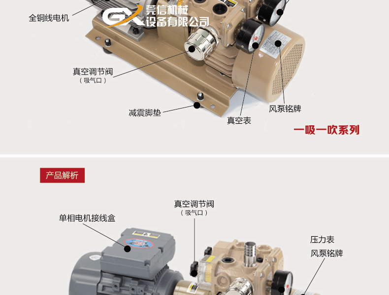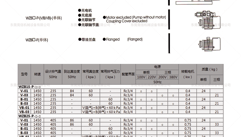 云望WZB25-P-V/B-03无油真空泵印刷泵干式风泵单吸泵一吸一吹泵
