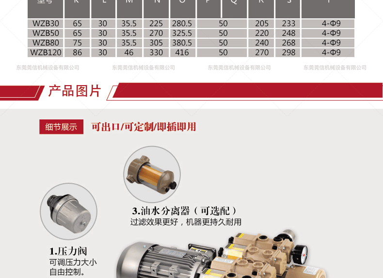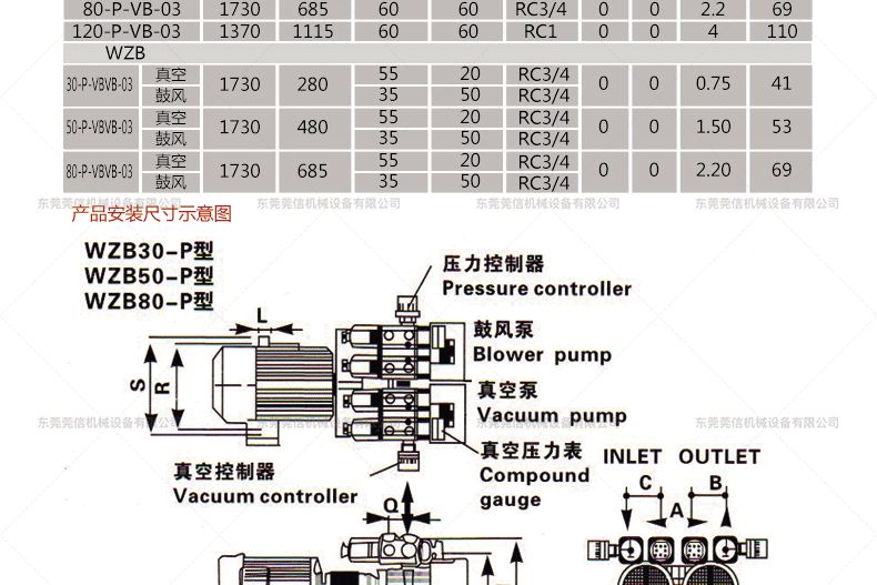 云望气泵WZB80-P-VB-03无油泵真空泵滑片泵干泵用于真空包装印刷