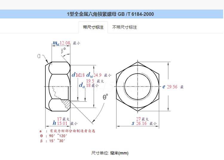 公称直径 | 18mm | ||