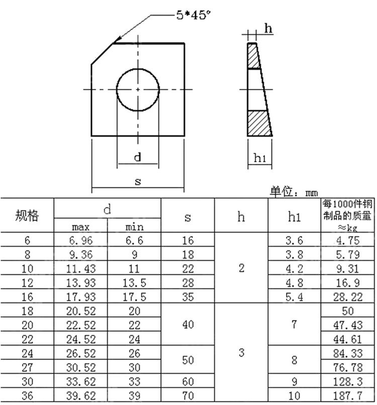 GB853槽钢用方斜垫圈四方垫片方垫GB852工字钢