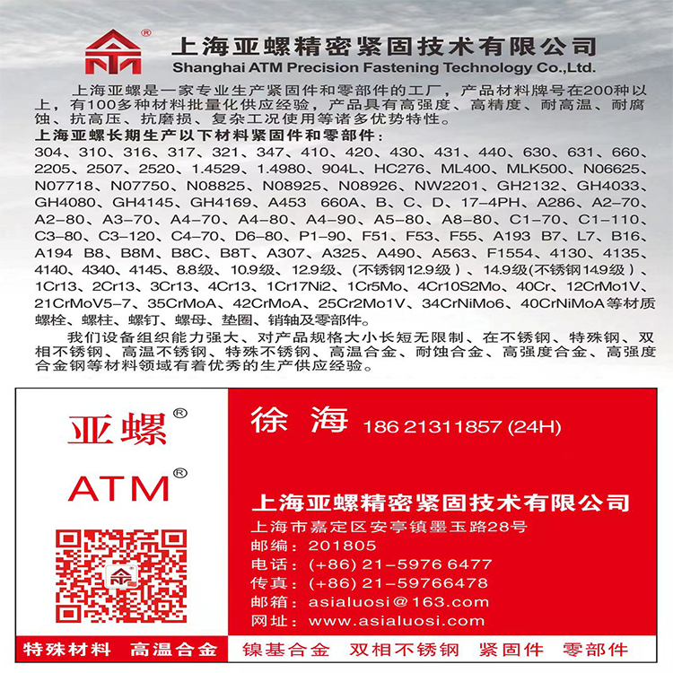 功能用途 | 航空航天用耐高温不锈钢紧固件 | ||