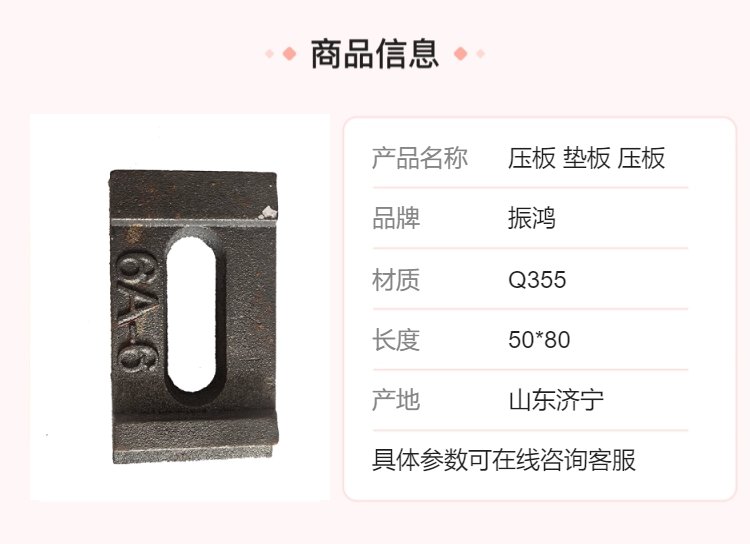 DGL-3轨道压板 垫板 24kg/m轨道联结压块源头厂家 品牌 | 振鸿 | ||