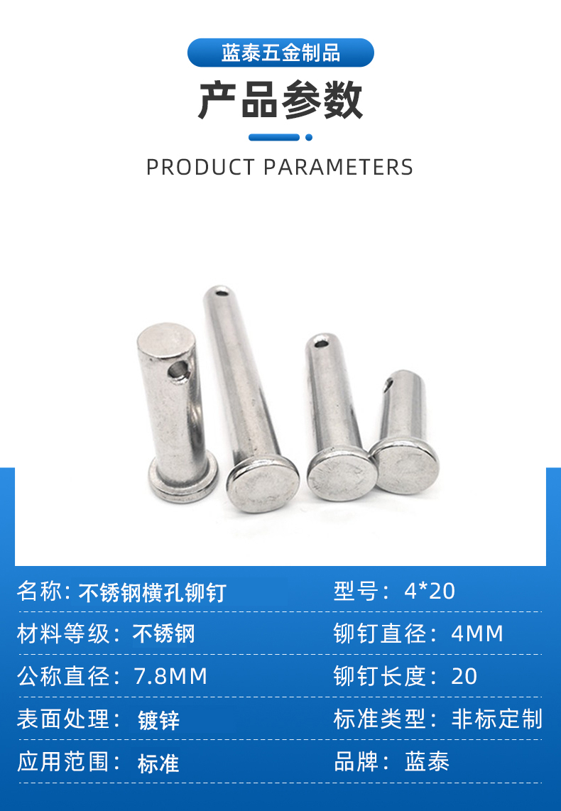 镀锌穿孔平头销轴4.8级带孔圆头高强度定位销子M6-M16