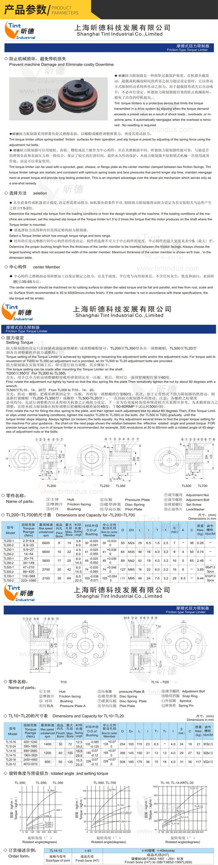 摩擦式TL250TL350力矩6.9-149扭矩限制器安全离合器扭力过载保护