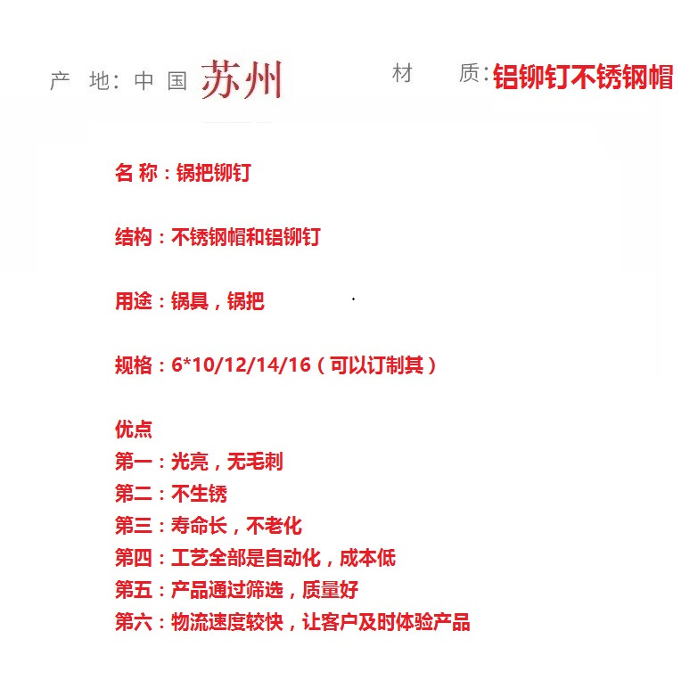 五金包头锅把铆钉大扁圆头实心铝铆钉 6*12/14/16非标定制工厂批发 是否进口