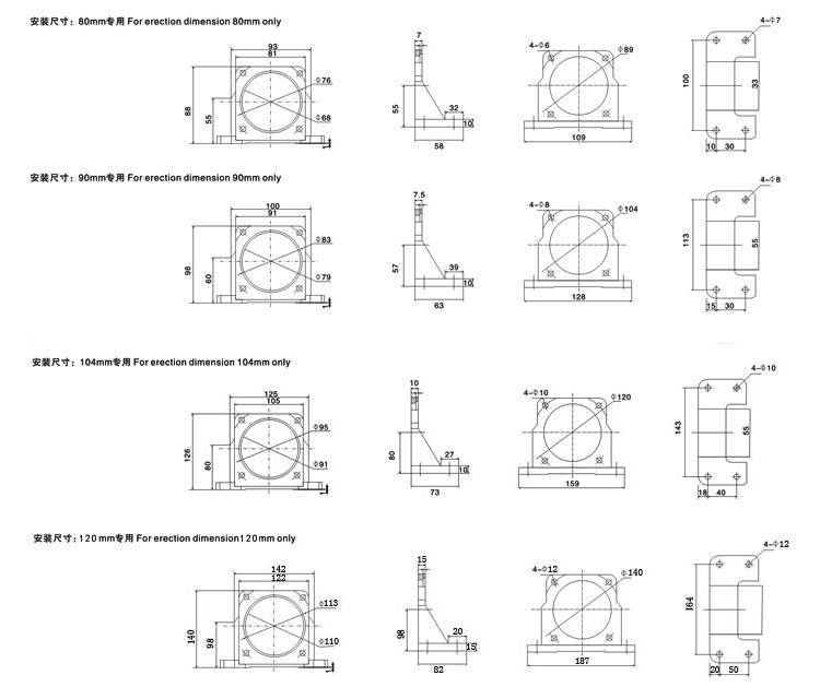 90型小齿轮减速马达功率为40W、60W、90W、120W,可带风扇,调速,电磁刹车。电压可为单相,也可为三相,三相不可调速。减速比为3--500,减速比可根据用户需要另行设计制造。箱体可分为:GN型、GU型。GN型时,轴为12。GU型时,轴为15。
