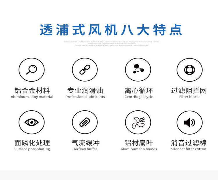 四、特殊叶片设计,压力高,风量大,噪音低,寿命长。