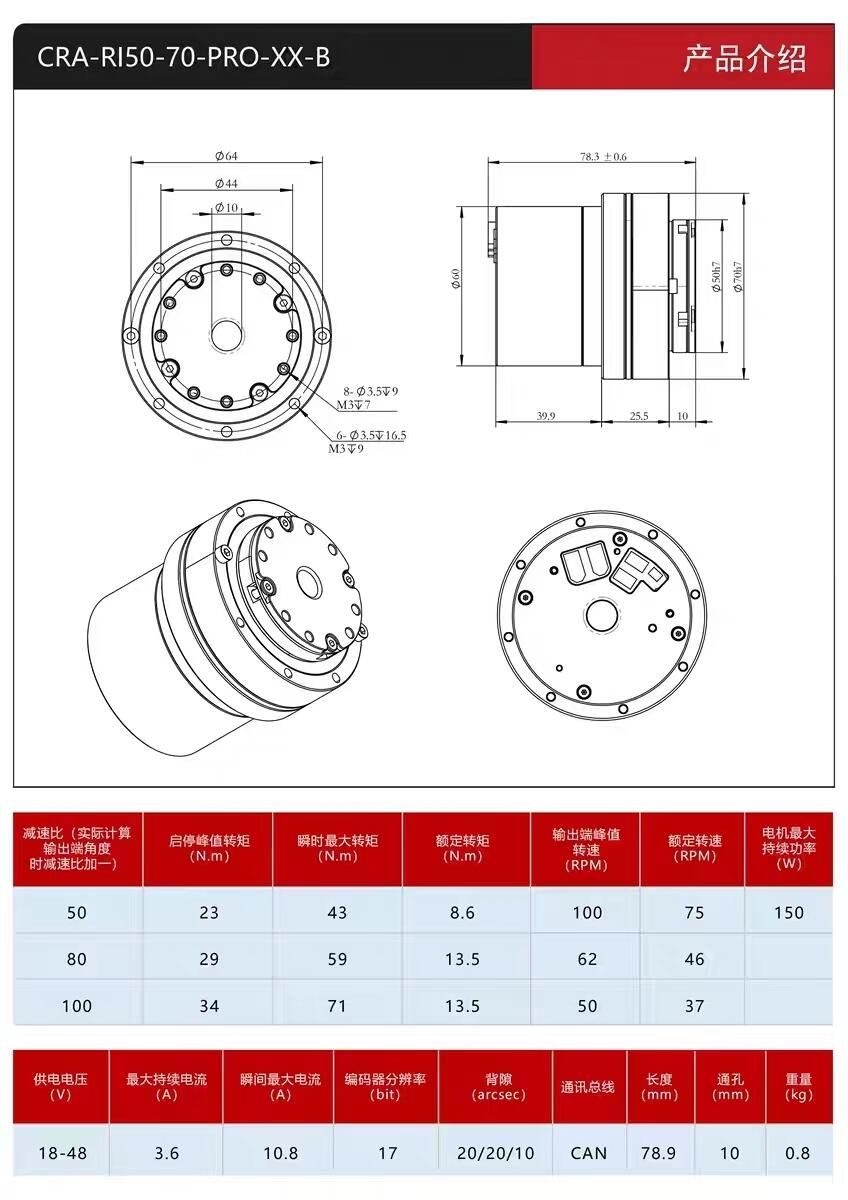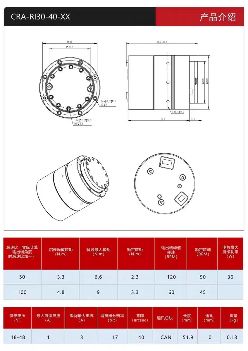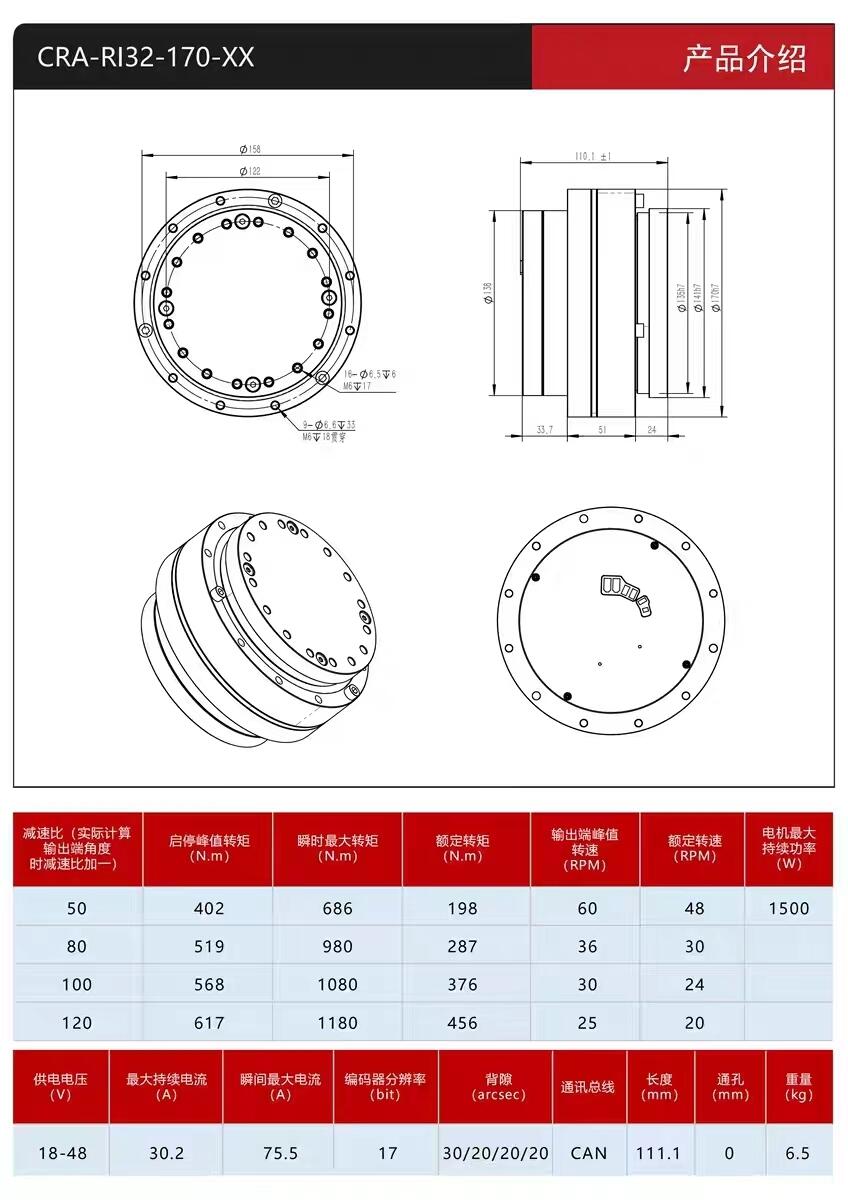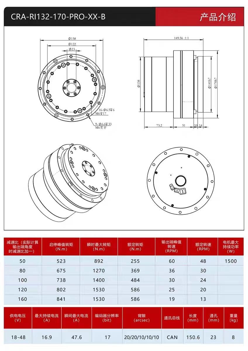 机器人关节模组协作机械手臂 谐波减速器伺服电机编码驱动一体CAN