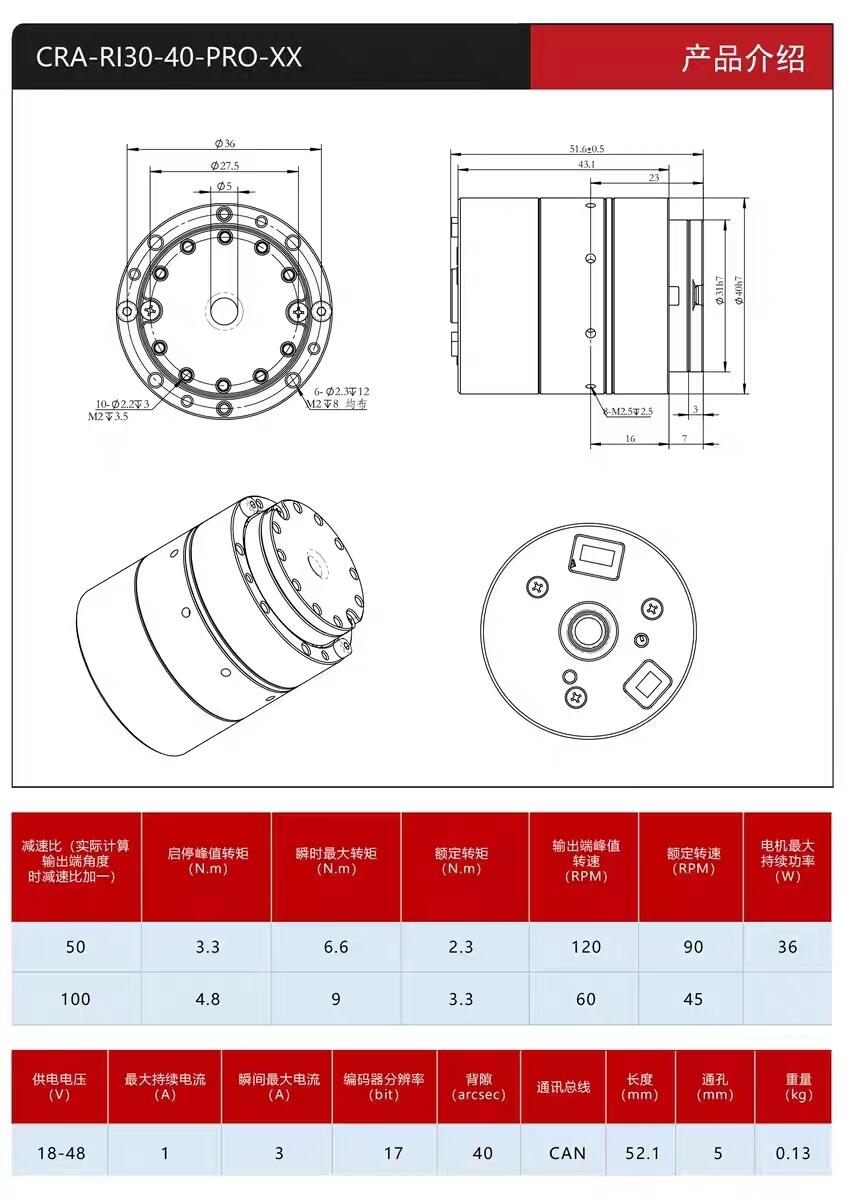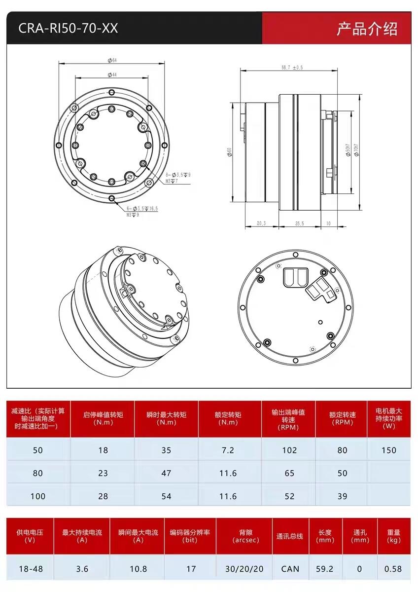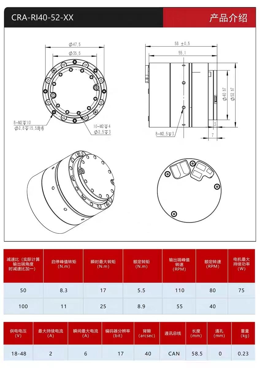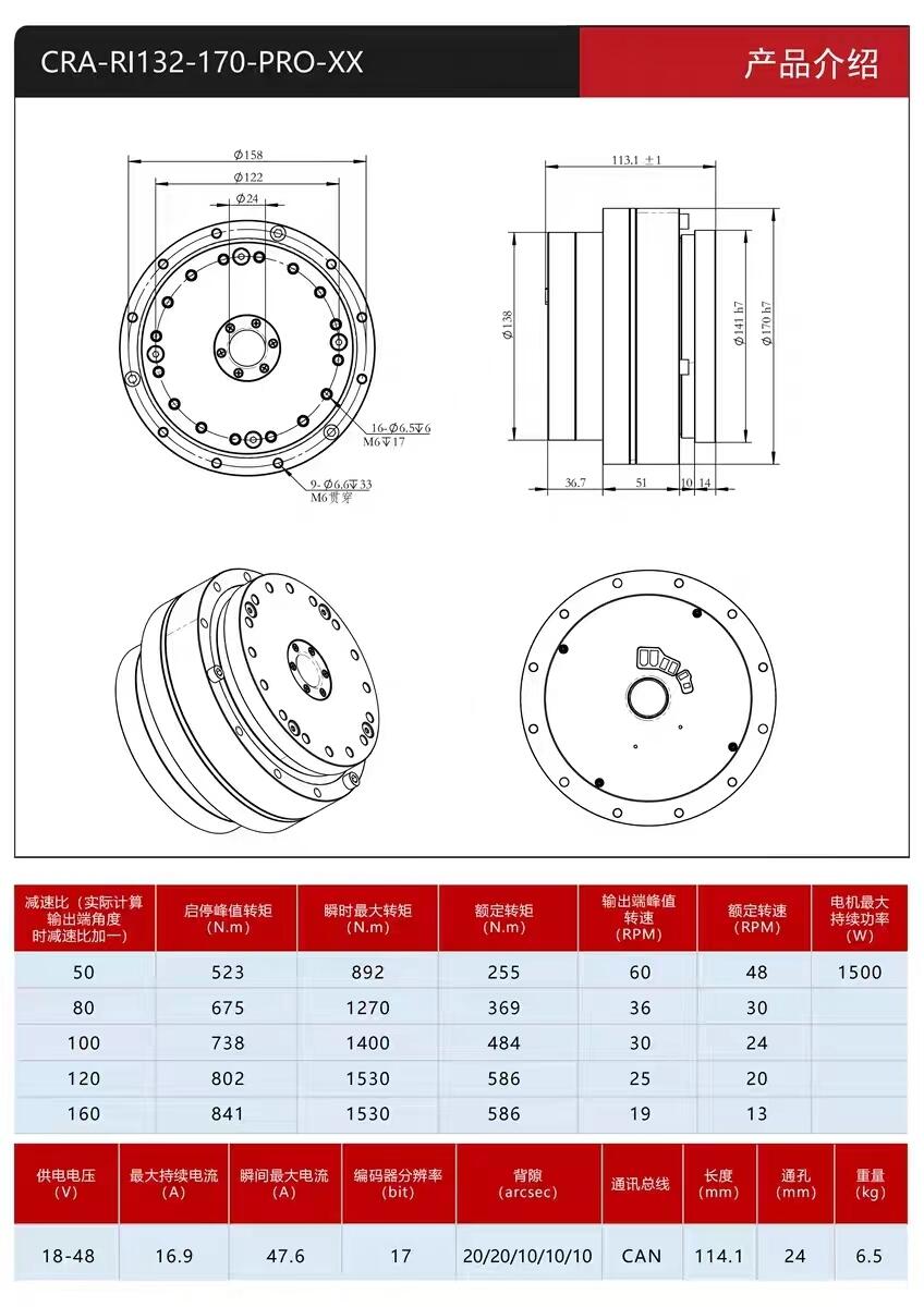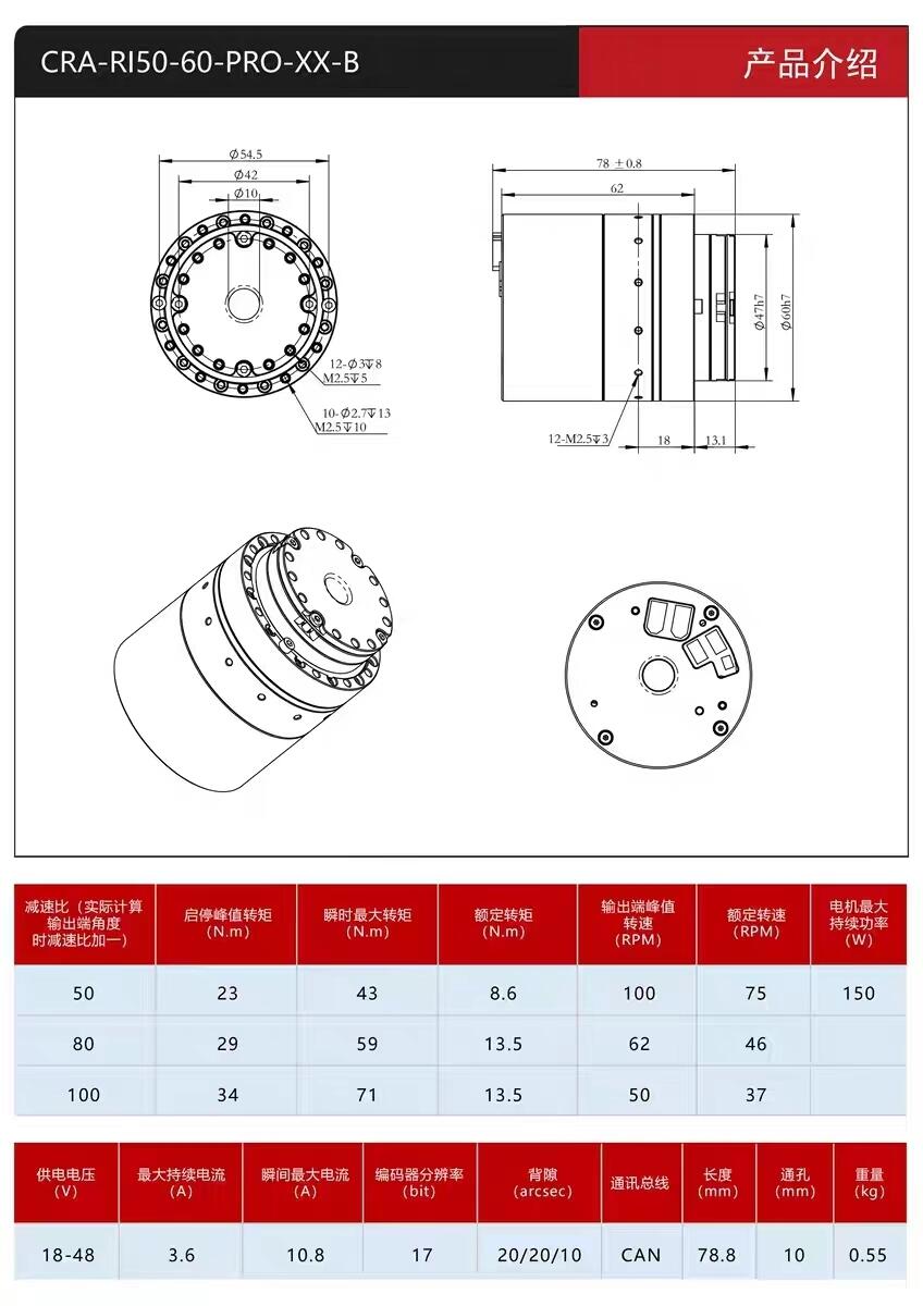 机器人关节模组协作机械手臂 谐波减速器伺服电机编码驱动一体CAN