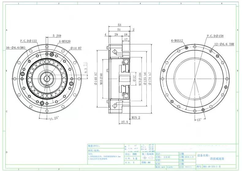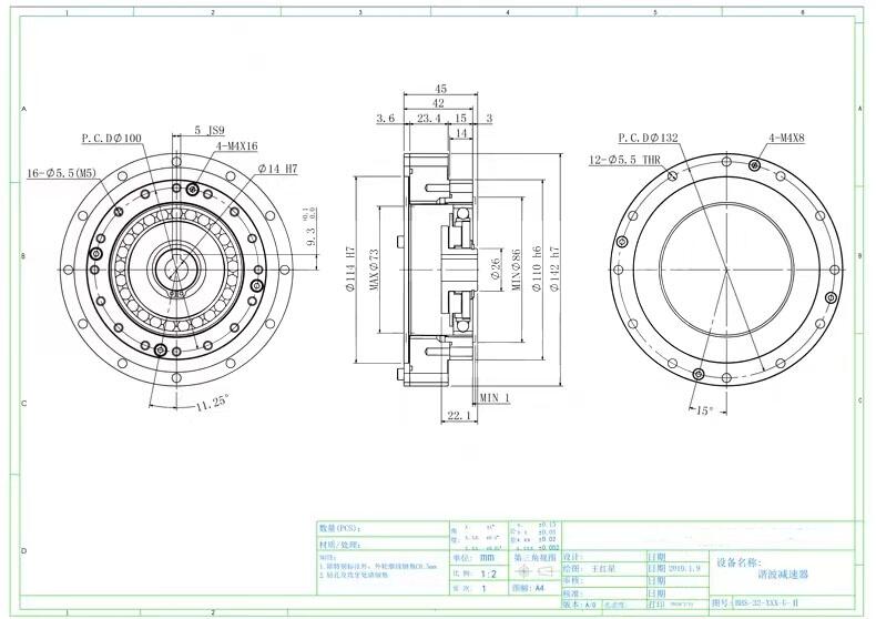 谐波减速器SHG十字连接型BHS-14-17-20-25-32-45-II 机械人减速机