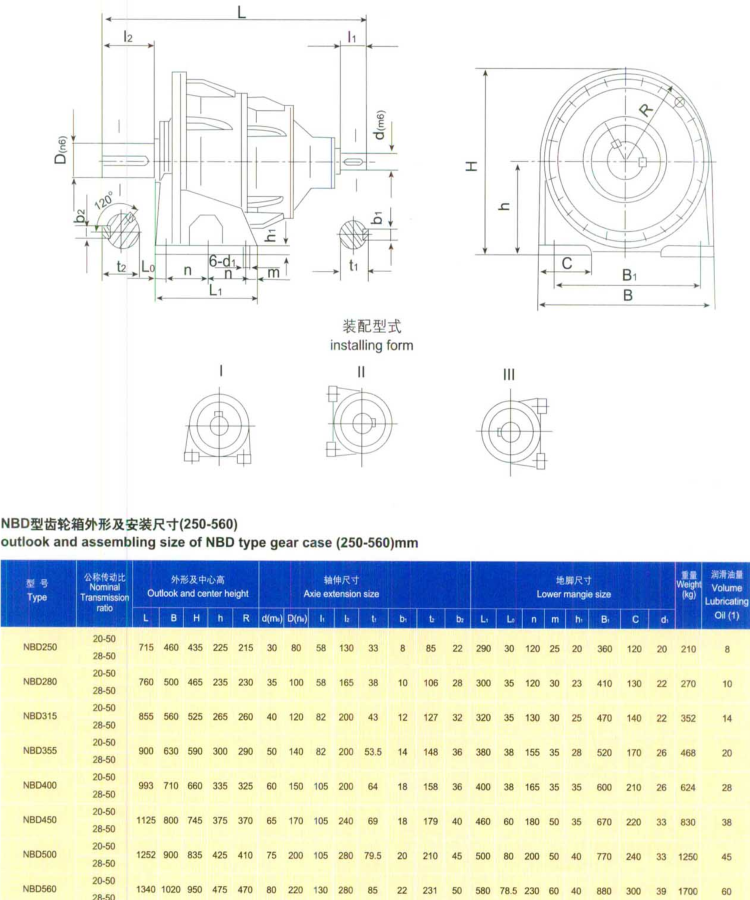 NBD行星齿轮减速机为双级传动,同轴式结构,底脚安装式产品,坚固结实,承载能力大,行星齿啮合,多齿啮合,功率分流,寿命长,噪音低,硬齿面材质和工艺,齿圈和行星齿轮相比NGW行星都加厚加粗了,使用寿命更长。箱体为球墨铸铁件,能承载的扭力更大,不易出现开裂现象。