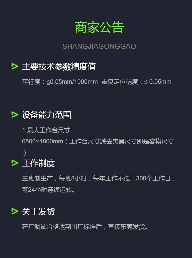 压缩空气压力: 0.5~0.6MPa(压缩空气修模使用,机床不用)