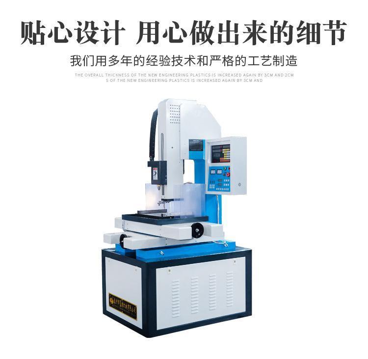 电火花穿孔机(spark-erosion drilling machine)是指用电火花加工原理,加工尺寸小于5mm的孔的电火花加工机床。用于加工中小型冲模,其加工特点是不受金属材料硬度的限制,可先将模板淬火后用本机加工所需要的孔型,以保证质量和提高使用寿命。工具电极材料采用钢、铸铁、铜均可。