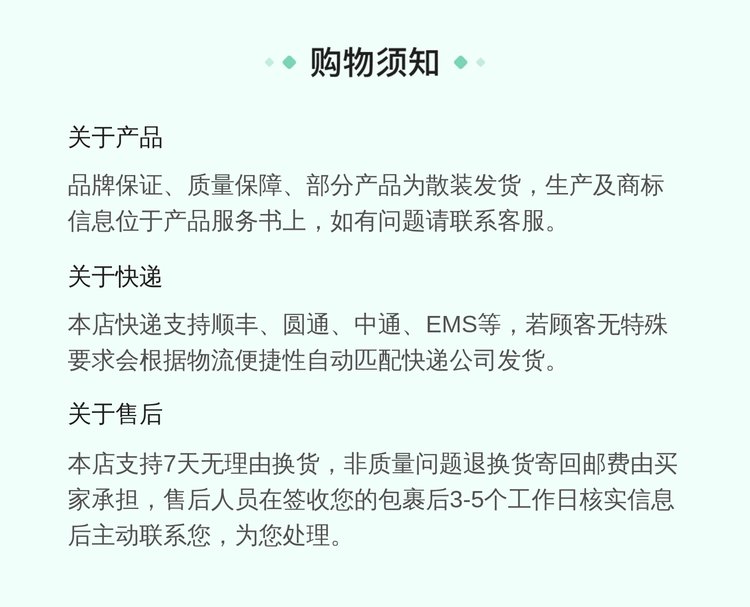 可售卖地 | 北京;天津;河北;山西;内蒙古;辽宁;吉林;黑龙江;上海;江苏;浙江;安徽;福建;江西;山东;河南;湖北;湖南;广东;广西;海南;重庆;四川;贵州;云南;西藏;陕西;甘肃;青海;宁夏;新疆 | ||