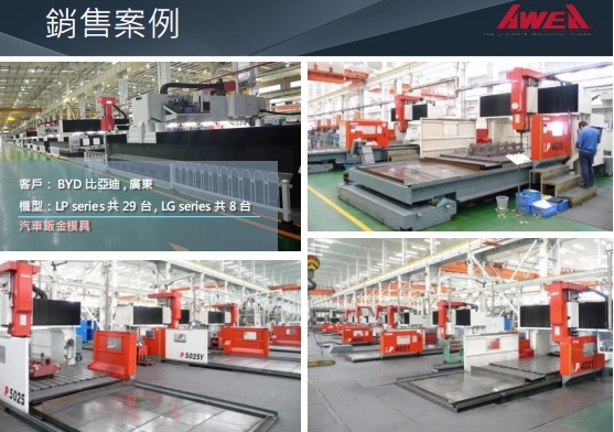 秉持龍門世家所代表的成熟製造能力與創新研發技術,亞崴 LP 系列龍門型五面加工中心機,憑藉著大馬力、高剛性結構,結合高品質、自動化等周邊配備與完整系列規格尺寸,提供您高效能、高生產力的加工對策;廣為全球知名汽車工業、精密模具工業、航太工業與能源工業等加工大廠所採用