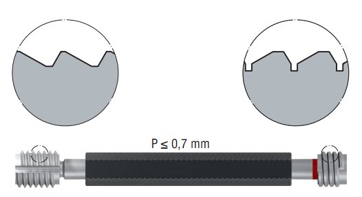 ? 使用我们的二件式量规,其类似通用的量规(通规和止规的组合体),对于如果自锁螺纹是使用EMUGE自锁螺纹丝锥加工出来的的螺纹完全足够了。