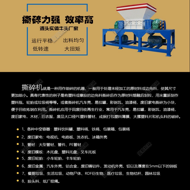 机头料塑料撕碎机编织带单轴撕碎机器支持定制品质保证