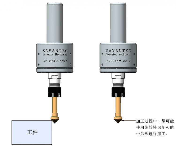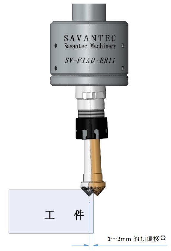 通过刀柄的浮动机制,FTA0?可以沿着工件不平整的边缘移动加工,使刀具有5~10mm的边缘补偿量。