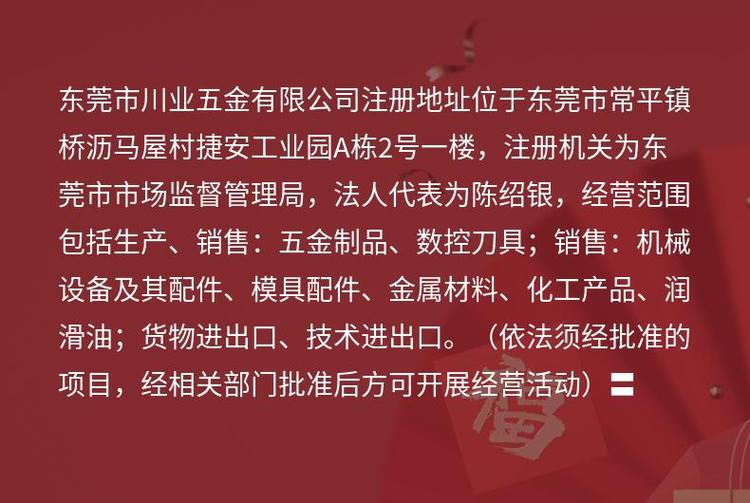 商铺名称:东莞市川业五金有限公司