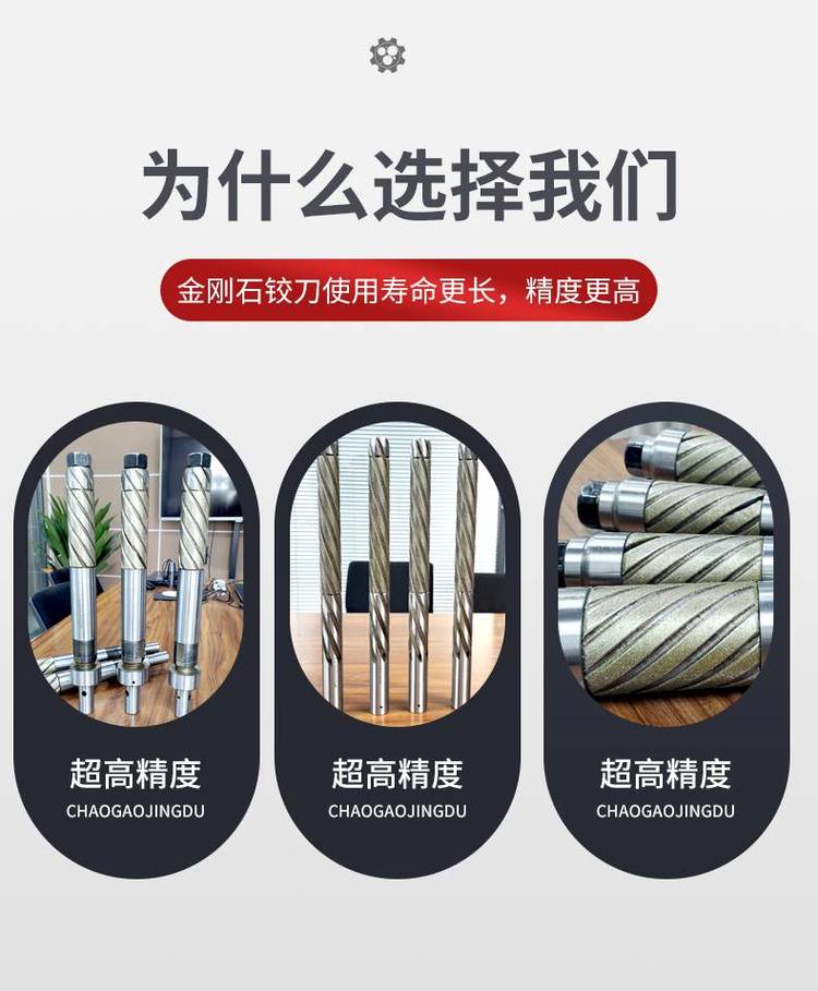 金刚石铰刀是运用电镀原理,通过金属结合剂(镍、钴、铁或铜等)将细小的金刚石颗粒均匀、牢固地结合在钢的基体上,并经过一定的修磨而制成的。是近20年发展起来的一种高精度内孔加工刀具。由于它的加工精度高(一般可达2μm)、表面粗糙度值小(一般可达Ra0.4~0.2μm)、加工效率高(一般可提高3~5倍)、寿命长(一般能加工10000件以上)、质量稳定可靠,因而在液压、农机、汽车、机床、军工等行业中得到了日益广泛的应用。