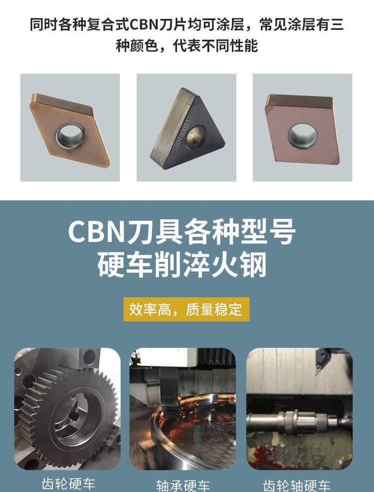 ??? (3)洁净生产:以车代磨是通过使剪切部分的材料退火变软而形成切削的,若冷却率过高,则会减小由切削力而产生的这种效果,从而加大机械磨损,缩短刀具寿命,因此CBN刀具车削淬硬钢时不需要添加切削液。对于尺寸受温差影响较大的零件,用户可以选择风冷;对于需润滑而非降温目的的切削状态,可选择具备湿切功能的CBN刀具材质如BN-H20,BN-H10。