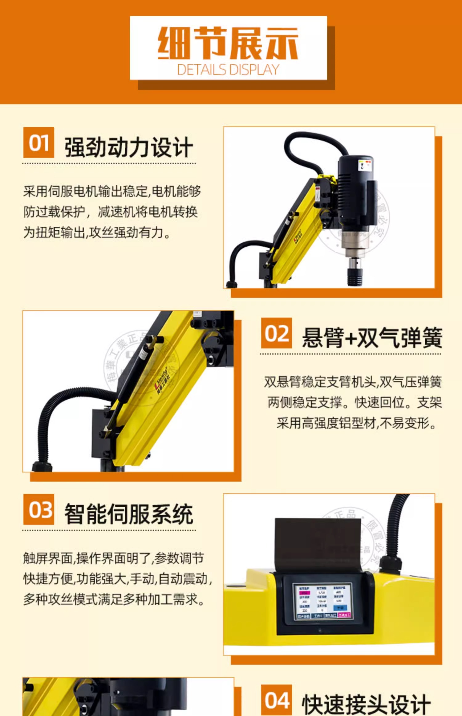 电动伺服攻丝机高速电机双重扭力保护动力强劲生产效率高梅华机械