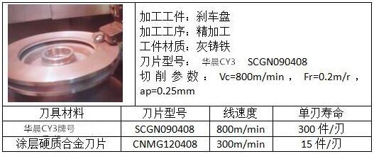 普通灰铸铁由于其良好的减震性,广泛应用于汽车行业,如刹车盘,制动鼓,发动机缸盖,箱体,飞轮等。目前针对灰铸铁中小型企业还是采用硬质合金刀具或涂层刀具较多,因为形不成大批量生产,涂层刀具性价比较高。