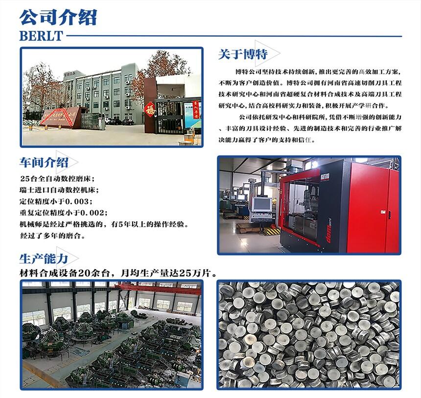 郑州博特硬质材料有限公司拥有河南省高速切削刀具工程技术研究中心和郑州市超硬复合材料刀具工程研究中心,二十年来专注超硬刀具制造技术和市场推广应用,致力于PCBN刀片以及金刚石砂轮的制造和销售,持续为国内外高端制造业提供高速、高效、绿色加工解决方案和高端精密PCBN刀具,助力工业4.0