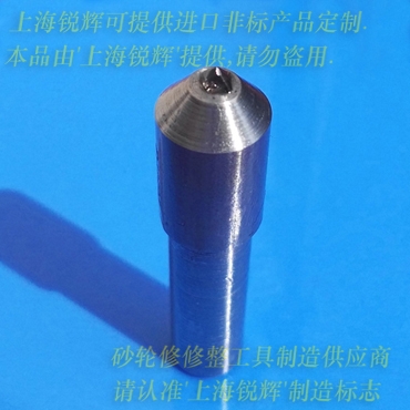 柄体头部焊接安装一个南非一级天然金刚石,重量1.25克拉。利用天然金刚石锐利的自然尖角来修整砂轮,提高砂轮的磨削效率及磨削精度。