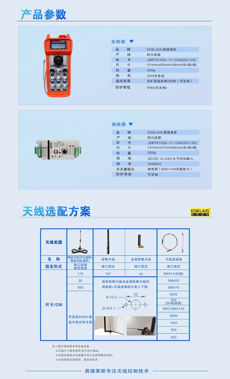 接收器供电 | AC/DC12~24V供电,功率大于20W | ||