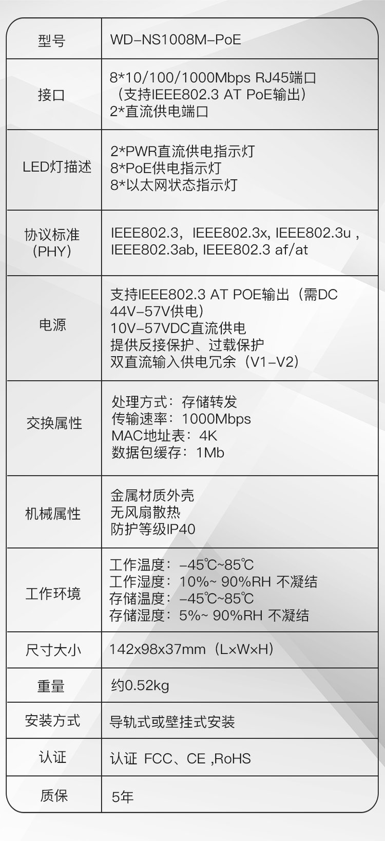 型号WD-NS1008M-PoE
