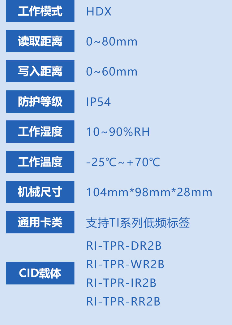 使用卡类 | 支持TI系列低频标签 | ||