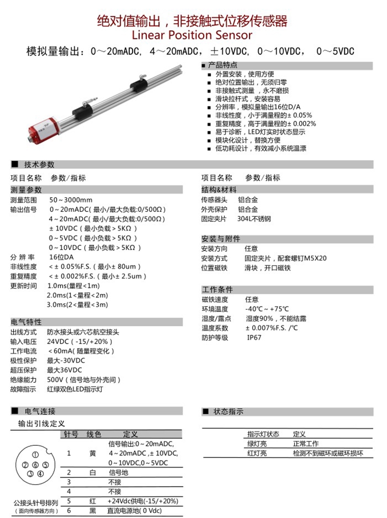 RD型50~3000mm输出4~20mA直杆式位移传感器 贺迪位移传感器