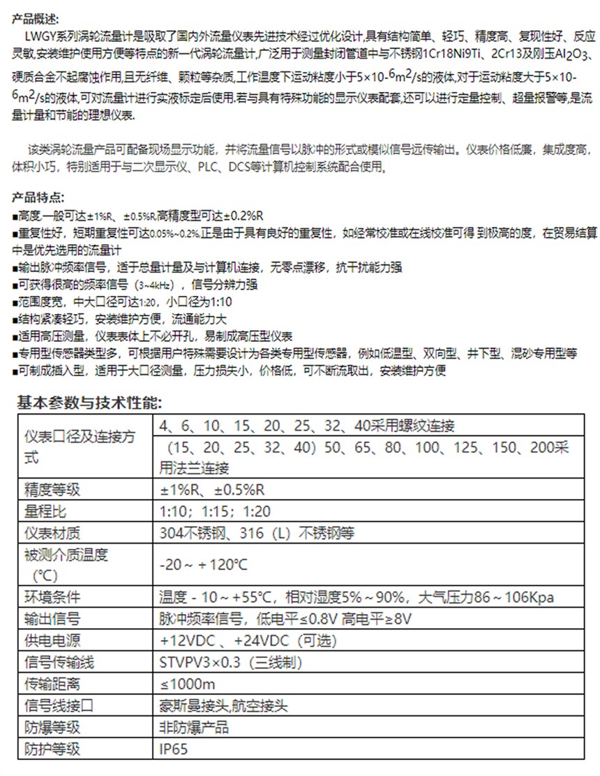 • 规格:LWGY涡轮流量计