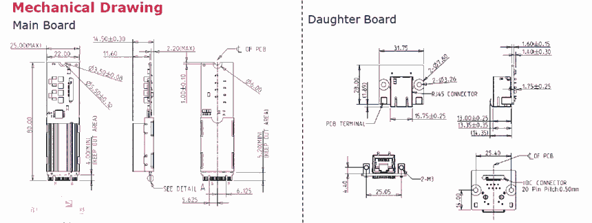 M.2 Board: 22 x 80 x 14.5 Daughter Board: 31.75 x 28 x 17.7 |