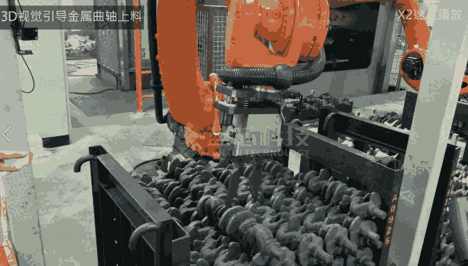 在一家车 企的曲轴加工车间,通过Wukong3D 视觉传感器引导机械臂完成曲轴上下料,提高了企业作业效率。
