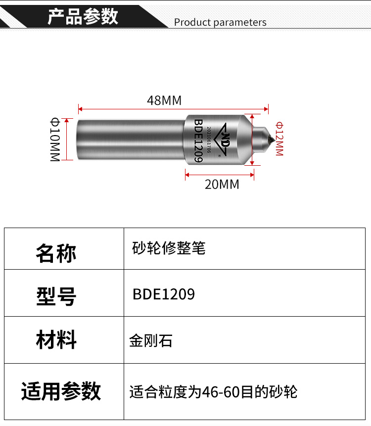 天然金刚石笔磨床砂轮修整器洗石笔BDE1209砂轮刀成型刀