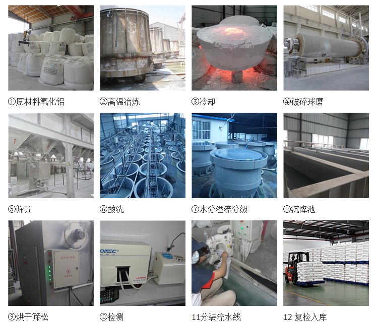 白刚玉微粉是以铝氧化粉为主要原料,经电弧炉内高温熔炼而成白刚玉块儿,经过颚式破碎机破碎至小块,球磨机进行二次破碎使颗粒更小,然后经过酸洗去杂质,虹吸分段,搅拌沉淀按时抽出不同型号,再经过沉淀烘干筛松而成。