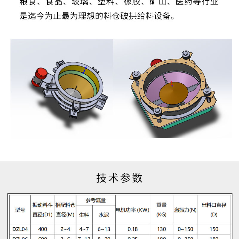 用途 | 于料仓的破拱、给料、截流及调流 | ||