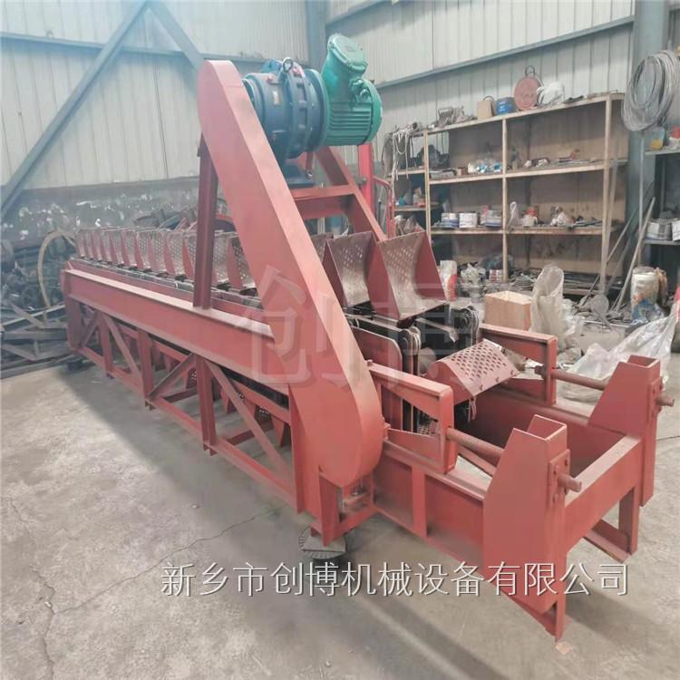 (5)斗链由两条链条和斗子组成。链条为片式牵引链,斗子用钢板制成,斗子上交错排列着脱水用得长孔,并用带榫的沉头螺栓间隔地(间隔一个节距)安装在链条上;