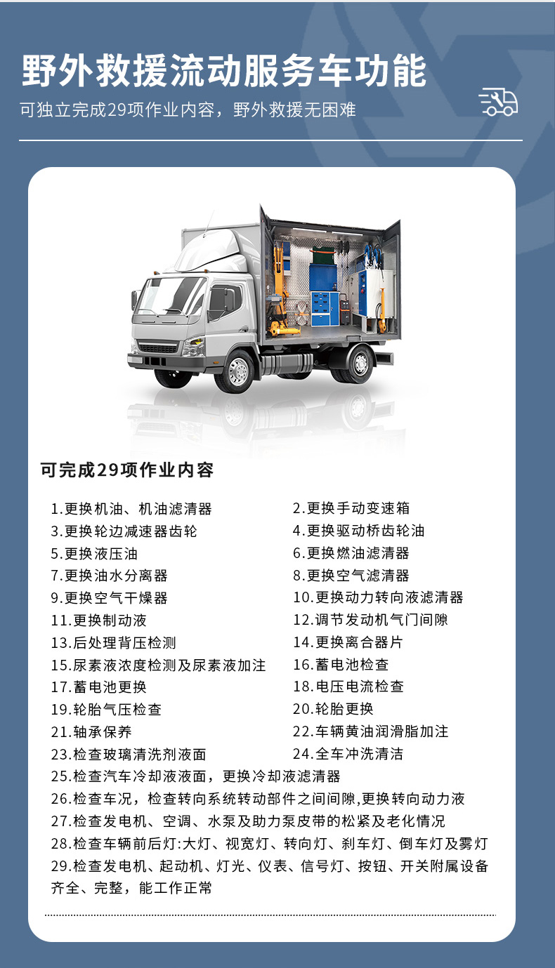 功能用途 | 多功能商用车野外维修流动服务车 | ||